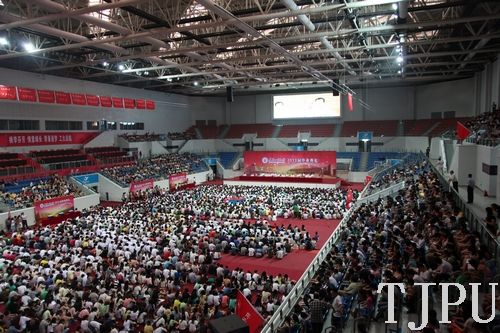 2013年6月20日上午,我校在体育馆隆重举行了2013届毕业典礼。校党委书记张宏伟,校党委副书记、校长杨庆新,副校长肖长发,校党委副书记杨吉棣、李玉翔,副校长赵宏、夏长亮,纪委书记王亚平,校长助理程博闻、陈莉,各学部、学院的党政领导,全体毕业生及部分毕业生家长出席了此次典礼。本次典礼由校办主任徐先林主持。
